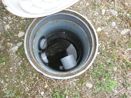 汚水枡の点検を実施。白い油脂等が少し溜まっていました。