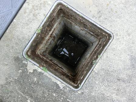 【点検枡】2015年11月18日(水)お家の点検10年目(富山市婦中町Y邸) 2016.02.20 [雨水枡] 雨水枡の点検を実施。特に異常はありません。 [建物前面/東側] [汚水枡] 汚水枡の点検を実施。 [建物後面/西側/浴室] 白い油脂等が少し溜まっている状態でした。お客様には口頭で現状及び対策を説明。 [建物後面/西側/キッチン]
