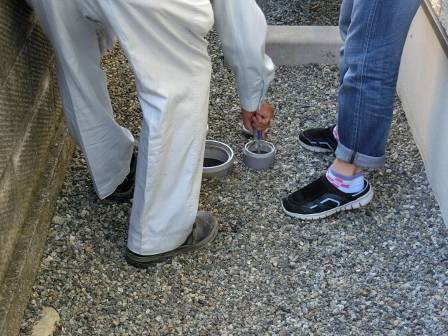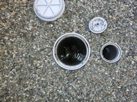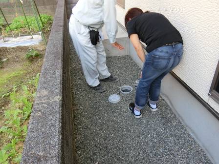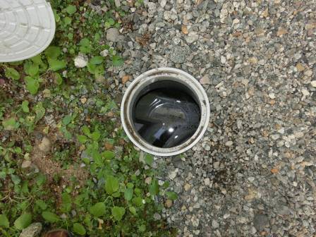 【点検枡】2015年9月29日(火)お家の点検5年目(富山市八尾町K邸) 2016.02.20 [雨水枡] 雨水枡の点検を実施。特に異常はありません。 [建物右面/東側] [汚水枡] 汚水枡の点検を実施。白い油脂等が溜まっている現状をお客様にも見て頂きました。 [建物左面/西側/洗面脱衣室] 今回は長いホースリールが無かったので、後日ホースを購入した後に洗浄して頂くようお願いしました。 [建物後面/北側/浴室]