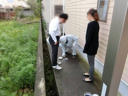 【点検枡】2016年10月18日(火)お家の点検10年目(富山市I邸) 2016.12.27 [雨水枡] 雨水枡の検査です。配管が詰まっている等の異常は特にありません。 [建物左面/西側] [汚水枡] 汚水枡には白い油脂等が溜まっている状態。数年に1回程度、ホースの水流で通気管と点検枡の内部を洗浄して頂くようお願いしました。屋内の排水管は薬剤で定期的にお手入れされているご様子。 [建物後面/北側/キッチン] [建物後面/北側/キッチン/通気管及び点検枡]
