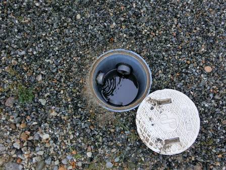 お客様に汚水枡の内部を見て頂き、このように油脂等が溜まる原因を説明。外周にホースリールが見当たらなかったので、いつものようにホースをお借りして洗浄できなかったのですが、油脂等が詰まる前にお手入れして頂くようお願いしました。