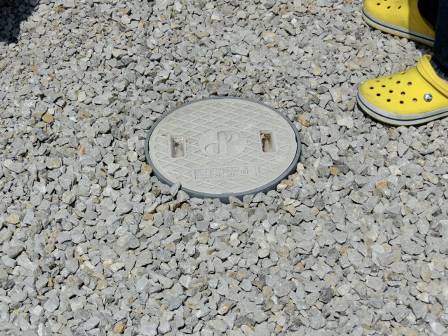 浴室やキッチン等からの生活排水。屋内の排水口から排水管を通って道路にある下水道本管まで流れる中継地点の汚水枡の場所を紹介。汚水枡の蓋を開けるとお客様は興味津々で内部を見ておられました。