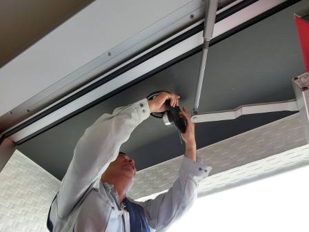 【玄関の照明カバーに虫が入った】2016年2月19日(金)お家の点検1年目(射水市H邸) 2016.03.15 Q 玄関の照明に虫が入っていたので取りたい。 現状を確認。円形の照明カバーは内部で2箇所のバネによって固定されています。 [玄関] 2箇所のバネを縮めて円形カバーを取り外すことができます。お客様にも見て頂きました。