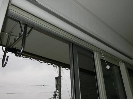 ブラインドウを上げてサッシの状態を検査。窓枠の木部が結露によって少し変色しているのを発見。この部屋では洗濯物を乾かしておられるご様子でした。洗濯物が乾くことで室内の水蒸気量が増加(湿度が上がる)し、室温が下がる(露点)ことでサッシ枠に結露が発生することがありますが、日常的にブラインドウを閉じているせいか、拭き掃除に気が廻りにくい場所かもしれません。