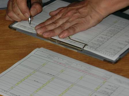 本日の一連の点検作業がひと通り終わってのお客様の最終確認・署名です。定期点検という訪問検査は「○年経過したから※※のような起こり得る現象が発生する」という具体的な決まりごとはないのですが、○年目を目安にして、長期的な流れの中での断片的な見方ではありますが、お家の変化を見て不具合等があれば対処しています。
