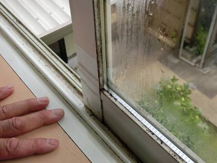 この内部結露は窓ガラスを両面から拭いても曇り症状が取れない、次第に曇り部分が大きくなってくることによって実感できる現象となります。「変かも?」と思った時、弊社保証書の保証期間内に問い合わせて頂ければ無償交換の対象になったのですが、そうでない場合は数万円のご負担となってしまいます。5年目点検の現場では「アレ?」と思ったときの早めのお問合せをお願いしています。