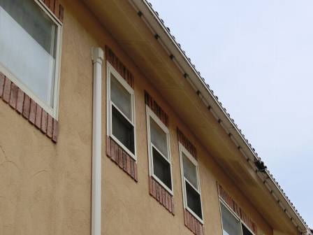【軒裏の汚れ】2014年6月21日(土)お家の点検10年目(砺波市N邸) 2015.03.06 他の面と比べると南側の軒裏が非常に汚れていました。風雨が下からも吹き込んで軒裏にも叩きつけていると思われます。お客様に風の状況をお聞きすると、この団地は風が強いとのことでした。