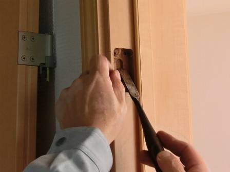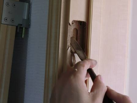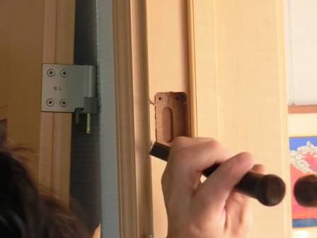 ノミとカナヅチで丁番をはめ込んでいる型を少し深く削ることになりました。