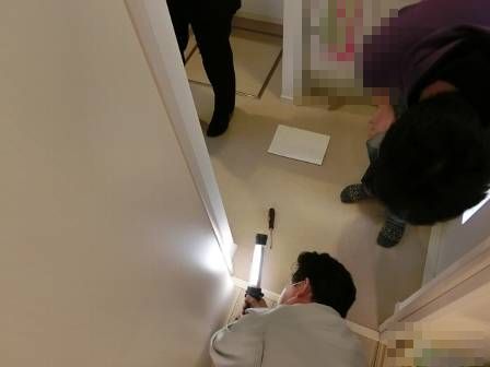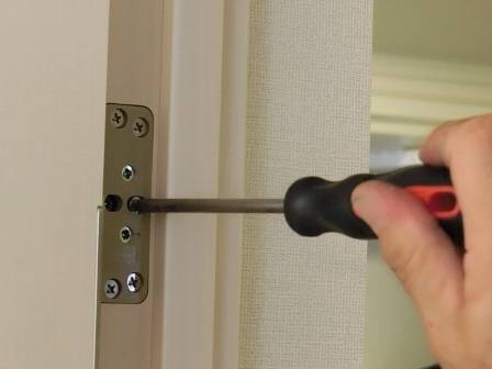 開き戸を閉めた時にガタツキ(前後に少し動く)がある場合、ラッチ受け金具を補正する箇所「どの部分を触るのか」を見て頂き、今後のお客様DIYに備えています。