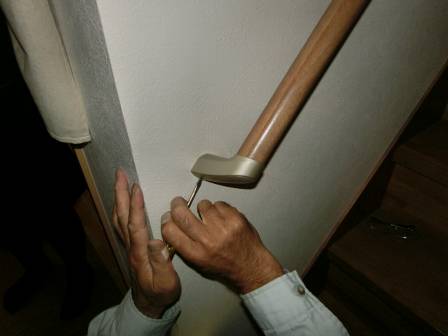 【階段手摺りが少し揺れていた】2016年11月1日(火)お家の点検5年目(富山市婦中町N邸) 2017.03.04 階段手摺りの固定具合を検査すると、少し支柱が緩んでいる状態でした。 手摺りの支柱カバーを取り外して確認。ビスが少し緩んでいたので増し締めして現状を改善。