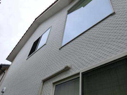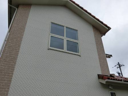 1年目点検だからでしょうか、雨垂れ跡はほとんど見受けられません。雨垂れや藻には様々な原因があるのですが、ひとつは立地条件(周囲の建物の有無)があり、隣家がある場合と空き地・田畑等の場合でも状況は異なってきます。