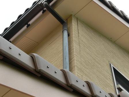 【雨樋の変色】2014年8月11日(月)お家の点検10年目(富山市Y邸) 2015.03.07 Q 雨樋の塗装が剥げてきているが、交換すべきなのか? A 雨樋塗装の南側が白く剥げている・変色している状態でした。見栄えは少し悪くなっていますが、機能的には破損している訳ではないので取替えの必要性は特にありません。 [建物後面/南側]