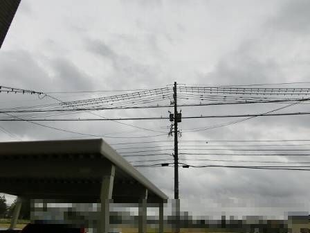 電線(北陸電力やNTT、ケーブルテレビ)に鳥が多数とまってフンの被害が大きかったご様子。