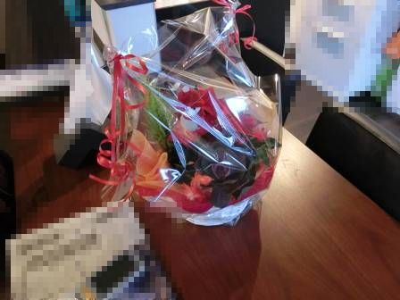 【1年目のお誕生日】2013年11月21日(木)お家の点検1年目(魚津市O邸) 2014.02.27 新築1年目、1年目定期点検でのご挨拶。真っ赤なポインセチア、小さな雪だるまがチョコンとあって、フラワーケーキのように可愛らしく仕上がっています。毎回のことですが、フラワーアレンジメントの富山市婦中町羽根にある花屋さん「フルールふるる」に大変感謝しています。 お花を受け取った奥様の満面の笑顔を見た石丸もホットでニコニコ笑顔♪