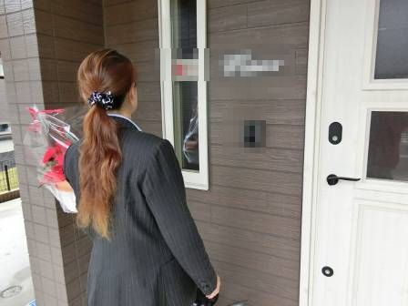 【1年目のお誕生日】2013年11月22日(金)お家の点検1年目(富山市婦中町M邸) 2014.02.27 新築にお引越しされて1年目のご挨拶。今回も意気揚々の中谷です♪ 満面の笑顔でプレゼント♪満面の笑顔同士、お客様との仲が非常に良さそうです。
