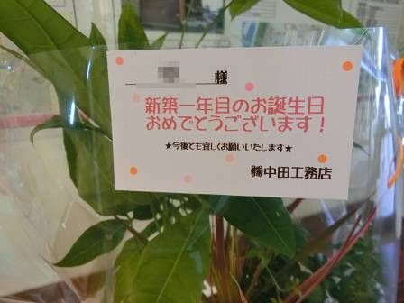 工事の砂田からお家のお誕生日プレゼントを贈呈。こうやってお客様に喜んで頂けると非常に嬉しいですね♪