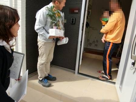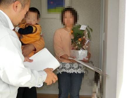 新築にお引越しされて1年目のご挨拶です。砂田の手からお客様ご家族の手へ・・・笑顔をお届け♪
