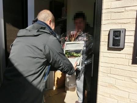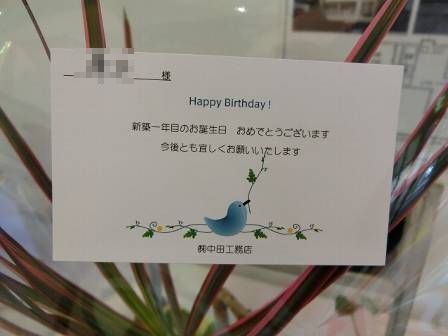 新築にお引越しされて1年目のご挨拶。砂田の手からお客様の手へ・・・笑顔をお届け♪
