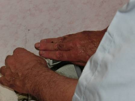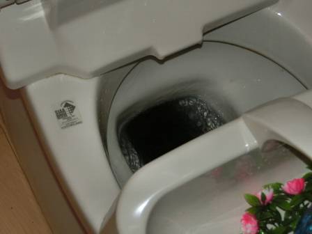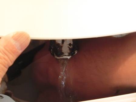 黒い水が出てきました。これはタンク内のゴム管の劣化・その周りに付着していた薬剤もあると思われます。タオルでキレイに拭き取っています。