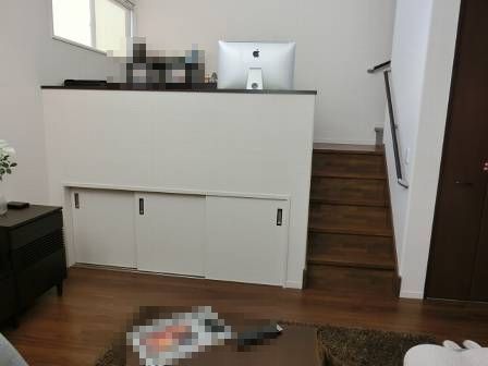 書斎の下は収納スペースです。LDKのスペースと小上がりの書斎、2階ホールとのツナガリも感じられる空間の取り方が上手に考えられています。