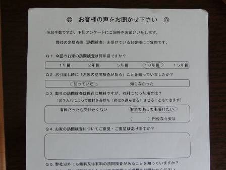 今回の10年目点検は無料ですが、将来的に有料になった場合は?有料でも受けたい。