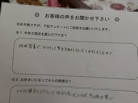 【K邸の紹介/中田工務店を選んだワケは?地域密着でメンテナンス等を細かく行なってくれそう】