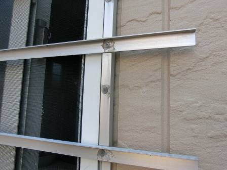 ホームセンターで部材を購入して穴を開けてサッシ枠にビス打ち、ビスで穴を開けた隙間から雨水が進入しないようにシーリング剤を充填されている徹底振りです。