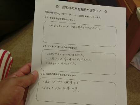 弊社・中田工務店との成約については様々なキッカケがあると思います。こうやってアンケートを実施しながら当時のことを思い出したりして話に花が咲いたりすることもあります。