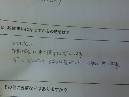とても良い。定期検査に来て頂けると安心する。ずっと繋がっているような気がして心強く感じる。