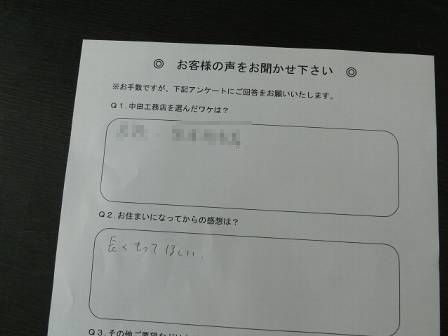 お住まいになってからの感想は?・・・長くもって欲しい。