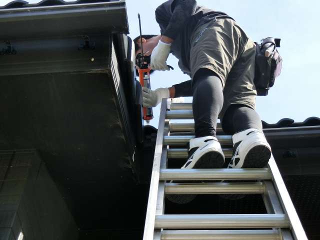 [コークガンを使ってシーリングを充填し、ヘラで均して施工完了]