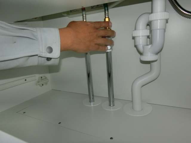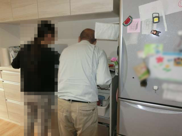 水漏れの有無を確認(洗面化粧台、キッチン)、現在は特に異常なし。排水管の接続部分にあるパッキン材の劣化等による水漏れが発生することもある為、起こり得る現象を理解して頂いた。