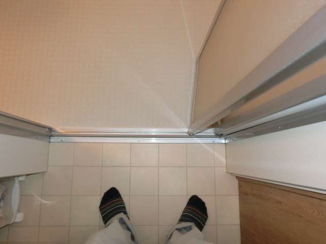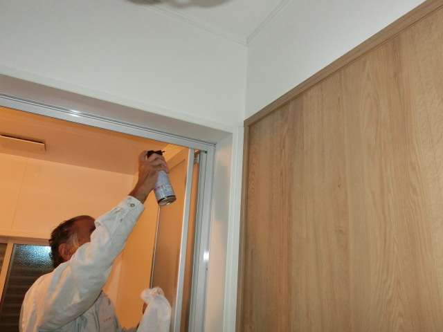 折れ戸が開けにくいことがあるとのことで、現状を確認。シリコンスプレーを吹き付けして開閉時の摩耗を軽減。
