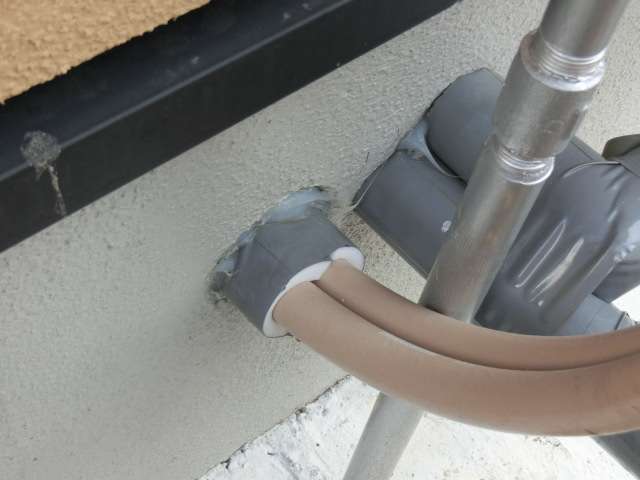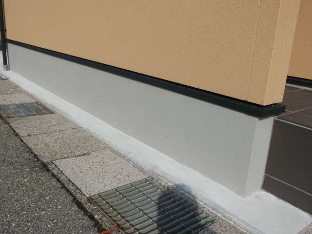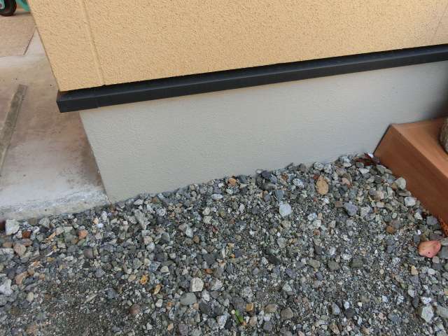 基礎のヒビ割れの有無を確認。お客様宅では(基礎仕上用弾性塗材)施工されているせいか、現段階ではヒビ割れ現象は特に見受けられなかった。