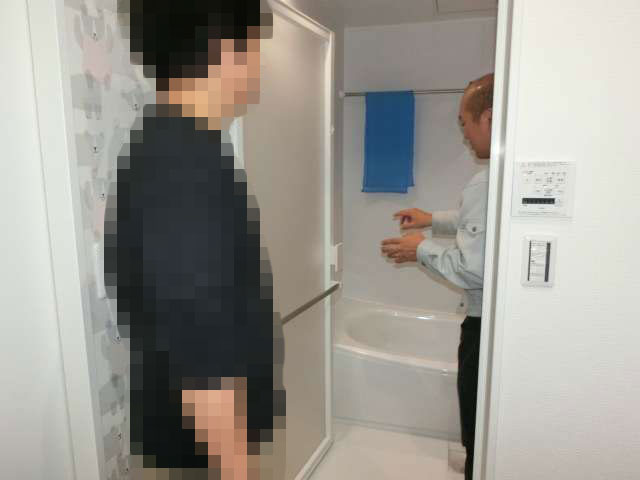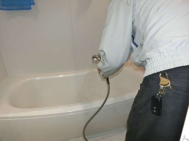 「シャワーの水圧が弱い」とのことで現状を確認。一般的にエコキュートを使っている家庭の場合、ガス給湯器の水道直圧方式とは異なり水圧が1/3に減圧される仕組みを説明。お客様は納得されなかった為、メーカーへ確認することとなった。