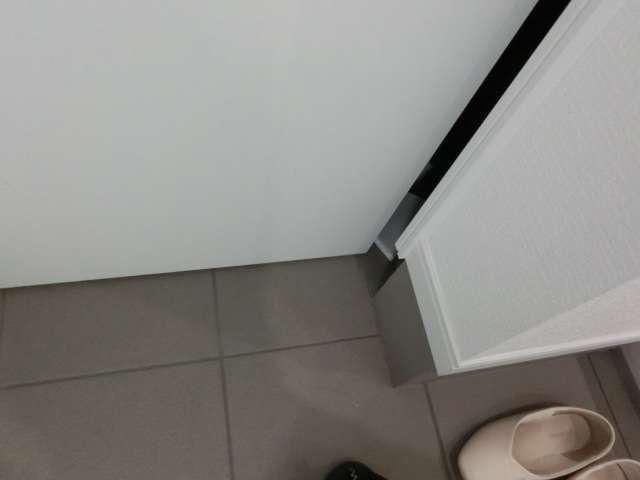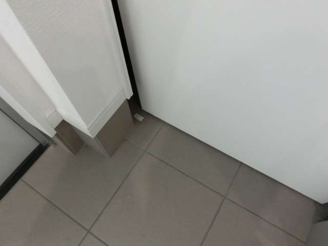 トランクルームの引き戸の「振り止め」が外れており、開閉時に引き戸が左右に振れる現象を確認。対処することとなった。