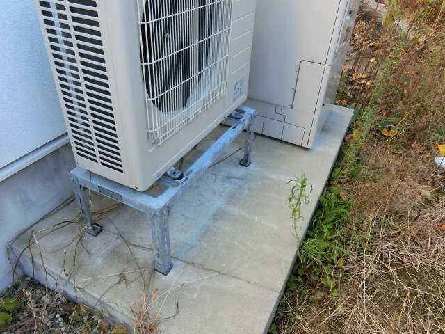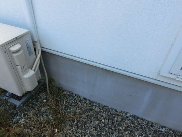 室外機から発生・ドレン穴から排出される結露水によって設備台・土間コンクリートが汚れる(藻の発生)のを防ぐ配慮。