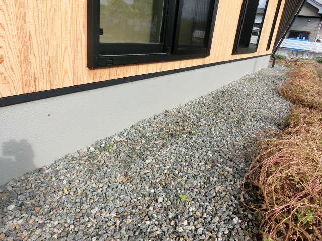 基礎表面のヒビ割れの有無を確認。お客様宅ではファンデーション(基礎仕上用弾性塗材)施工されているせいか、現段階ではヒビ割れ現象は特に見受けられなかった。