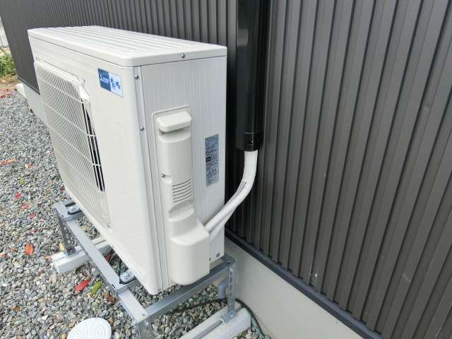 室外機から発生・ドレン穴から排出される結露水によって設備台・土間コンクリートが汚れる(藻の発生等)のを防ぐ配慮。
