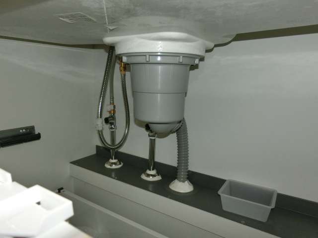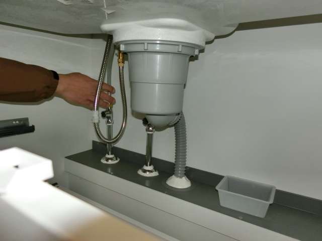 シンク下にある白い容器が定位置ではなかった為、蛇腹ホースの真下に移動させた。