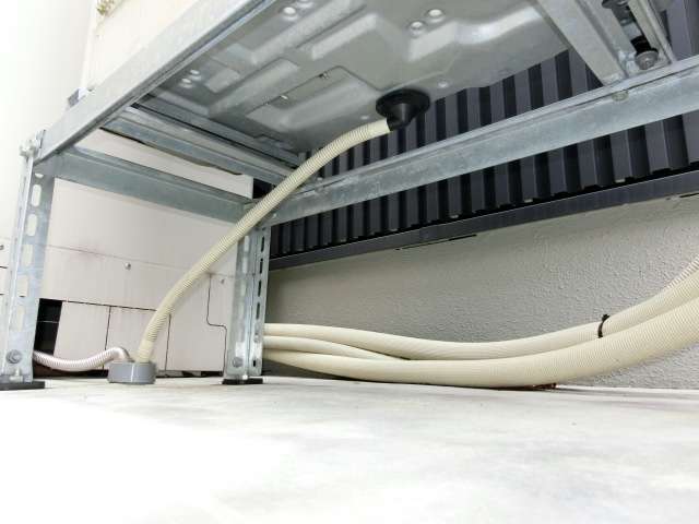 室外機から発生・ドレン穴から排出される結露水によって設備台・土間コンクリートが汚れる(藻の発生等)のを防ぐ配慮。