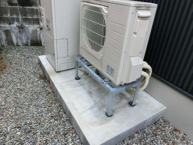室外機から発生・ドレン穴から排出される結露水によって設備台・土間コンクリートが汚れる(藻の発生等)のを防ぐ配慮。