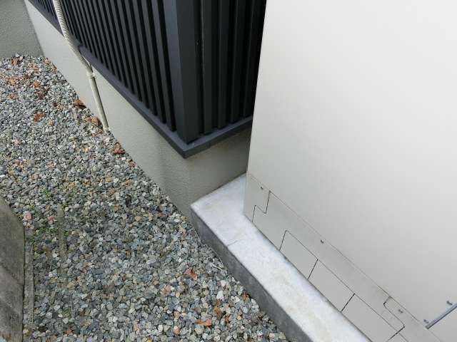 基礎表面のヒビ割れの有無を確認。お客様宅はファンデーション(基礎仕上用弾性塗材)施工となっていることによってか、ヒビ割れ現象は前回の1年目点検同様、特に見受けられなかった。