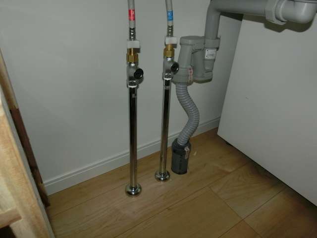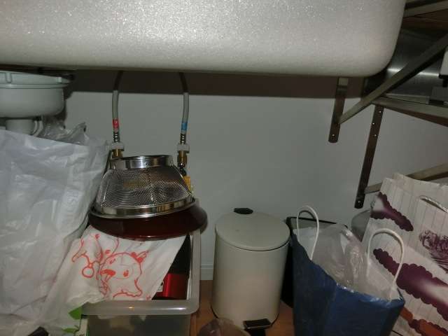 給排水管からの水漏れの有無を確認。収納の陰になることで給排水管からの水漏れは発見しにくい為、「水漏れ事例」を知ること、確認する習慣を促した。