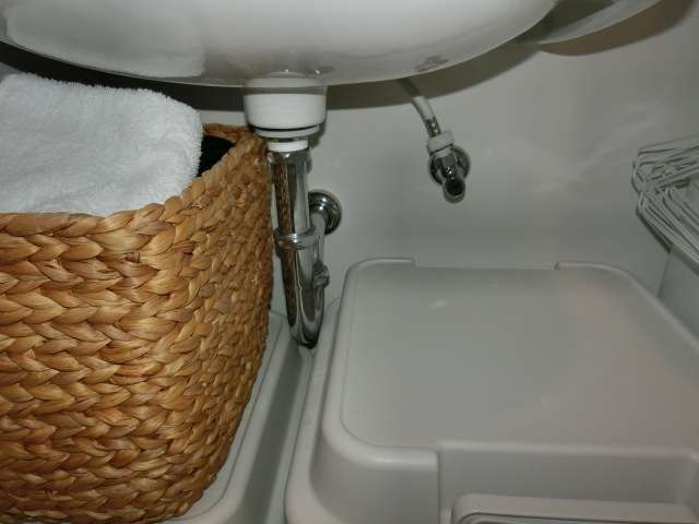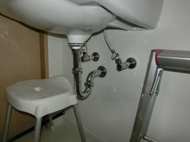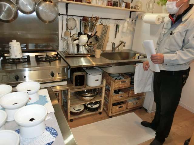 給排水管からの水漏れの有無を確認。収納の陰になることで給排水管からの水漏れは発見しにくい為、「水漏れ事例」を知ること、確認する習慣を促した。