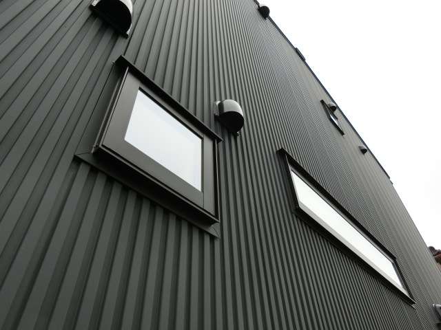外壁材はガルバリウム鋼板仕様。雨垂れ跡は特に目立っていなかった。