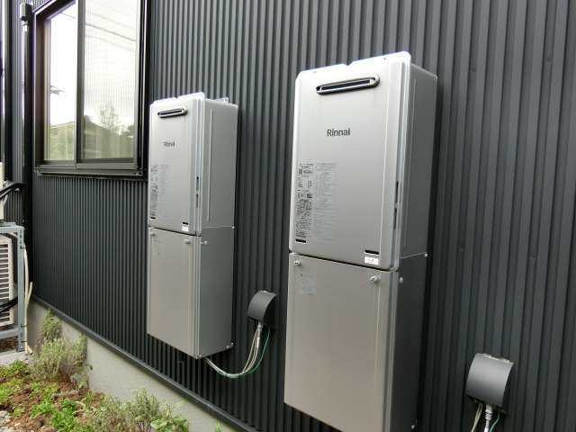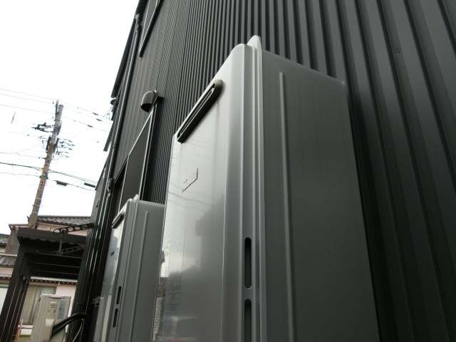ガス式給湯器の配管は基礎ではなく背面の壁を貫通させていると思われる。