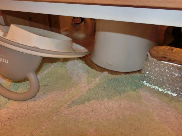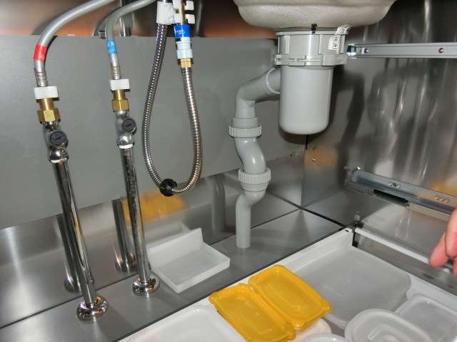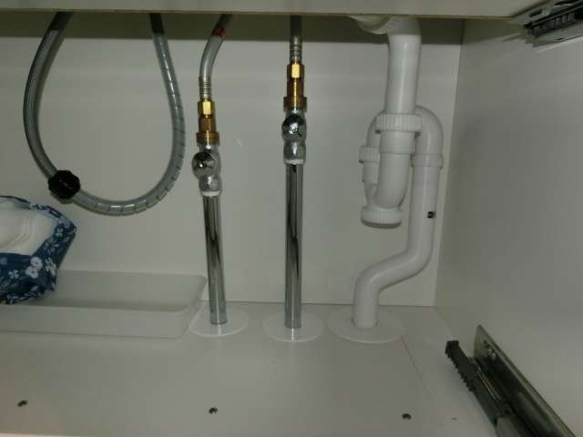 給排水管からの水漏れの有無を確認。収納の陰になることで給排水管からの水漏れは発見しにくい為、「水漏れ事例」を知ること、確認する習慣を促した。