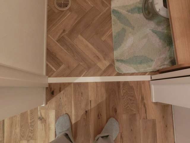 床材は水に強い塩化ビニール製のクッションフロア仕様。特に異常なし。