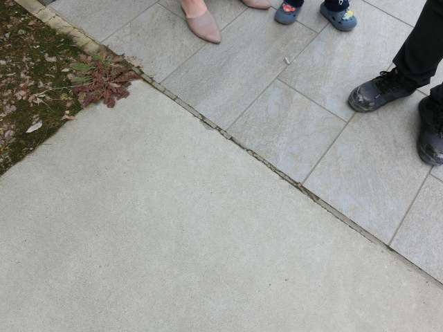 基礎表面のヒビ割れの有無を確認。お客様宅ではファンデーション(基礎仕上用弾性塗材)施工されているせいか、現段階ではヒビ割れ現象は特に見受けられなかった。